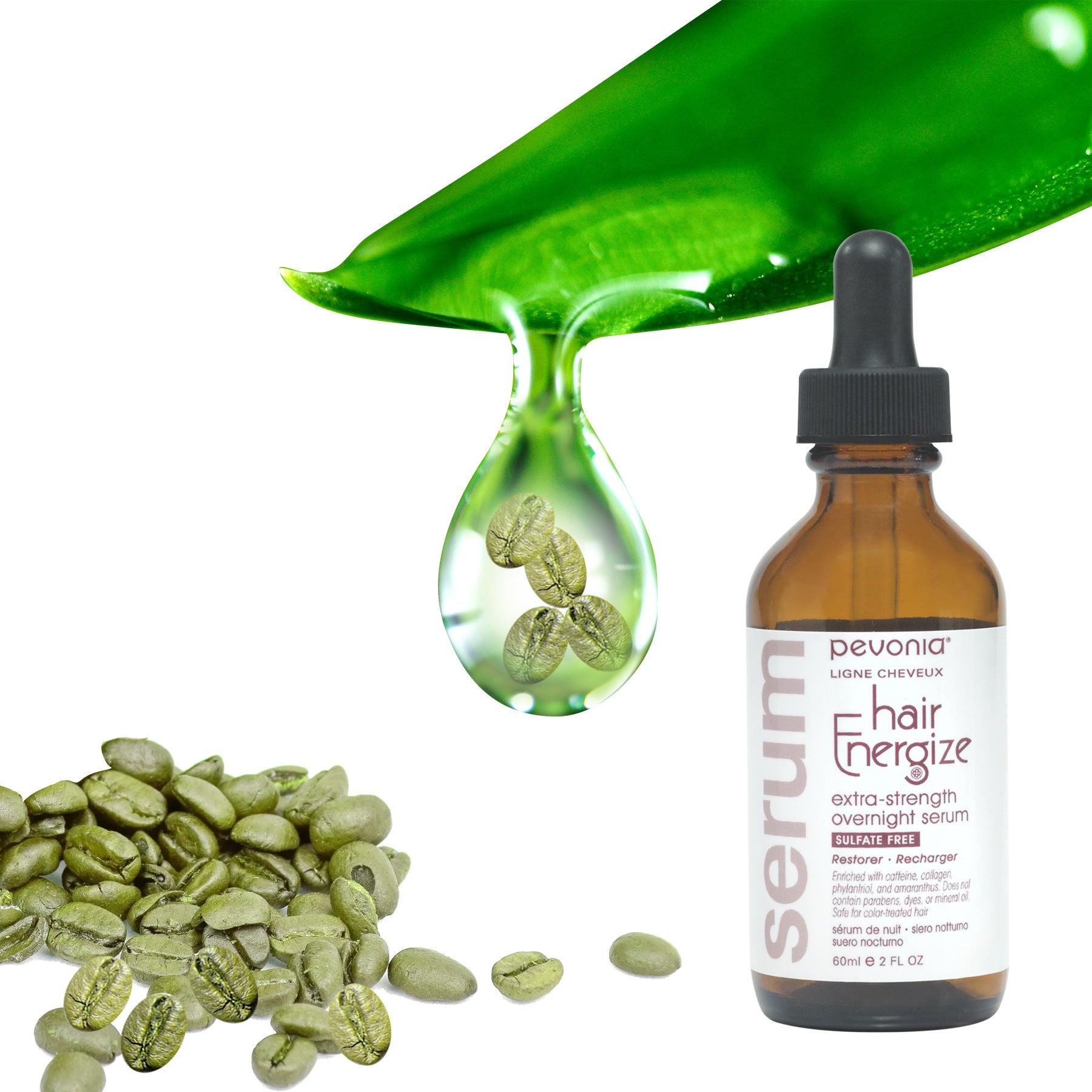Encapsulated Caffeine from Green Coffee reduces hair thinning and stimulates hair growth; counteracts DHT action in hair follicles.